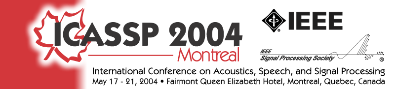 The 2004 IEEE International Conference on Acoustics, Speech, and Signal Processing (ICASSP 2004) will be held May 17-21, 2004, at the Fairmont Queen Elizabeth Hotel in Montreal, Quebec, Canada. Sponsored by the IEEE Signal Processing Society, ICASSP is the world's largest and most comprehensive technical conference focused on signal processing and its applications. The conference will feature world-class plenary speakers, tutorials, exhibits, and over 50 lecture and poster sessions on: